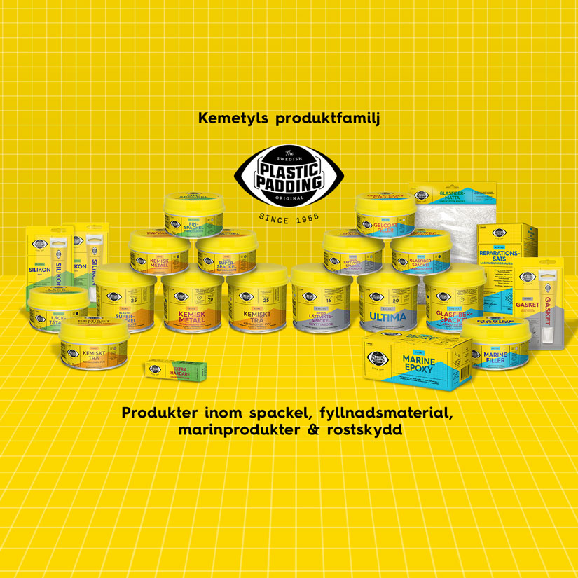 Arvostettu ja tunnettu ruotsalainen tuotemerkki, joka perustettiin jo vuonna 1956. Plastic Padding valloitti Pohjoismaat kemiallisella metallillaan 50 vuotta sitten, ja nyt se toimittaa tuotteita eri aloille, kuten kotiin, veneeseen ja autoon. Plastic Paddingin täyte- ja tiivistysmassat täyttävät, kiinnittävät, tiivistävät, korjaavat ja korvaavat puuta, metallia, kiveä, lasikuitua ja kovaa muovia.