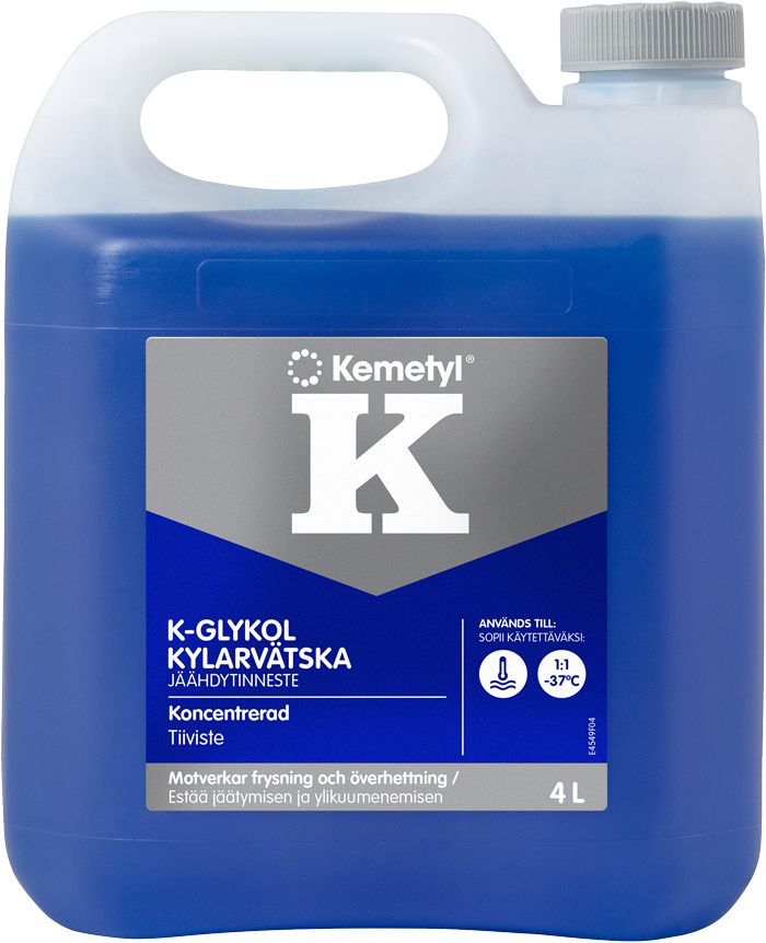 Vesijäähdytteisten polttomoottoreiden jäähdytysneste, joka suojaa pakkaselta, ylikuumenemiselta ja korroosiolta. K-Glykol®-jäähdytysneste perustuu etyleeniglykoliin, jossa on orgaanisia korroosionestoaineita, ja sitä voidaan sekoittaa muiden etyleeniglykolipohjaisten jäähdytysnesteiden kanssa. K-Glykol-jäähdytysneste täyttää brittiläisen standardin BS6580:2010 ja ASTM D 3306 vaatimukset.