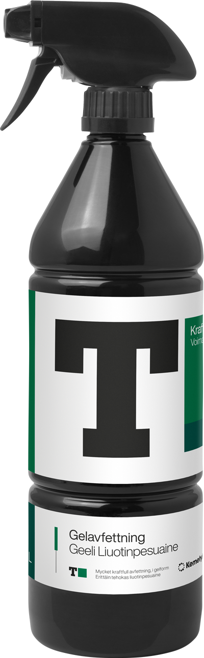 Tack vare samspelet mellan den nya kraftfulla formuleringen och gelformen klarar T-Grön Gelavfettning att rengöra även starkt nedsmutsade ytor.
