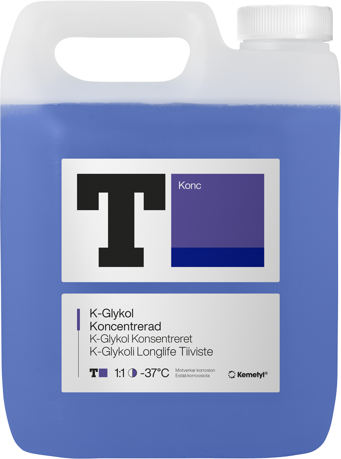 Kylvätskan är blåfärgad och finns som koncentrat och färdigblandad. Den färdigblandade ger ett frysskydd ned till -37°C.