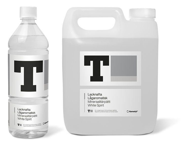 T-Lacknafta är ett lågaromatiskt lösningsmedel för spädning av olje- och alkydfärger samt för rengöring av penslar och måleriverktyg.