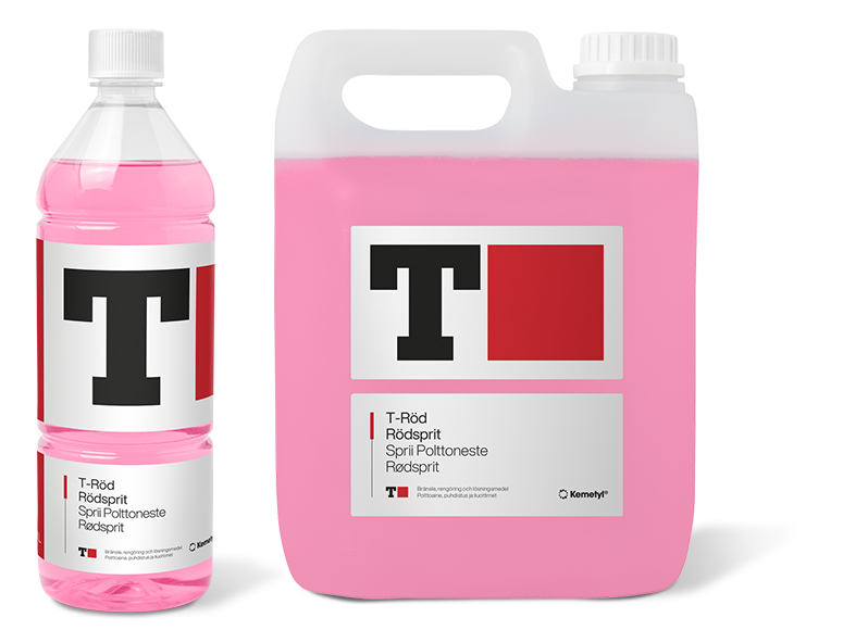 T-Röd® Rödsprit används som etanolbaserat lösningsmedel för borttagning av färg och fläckar samt rengöring av till exempel sanitära utrymmen. Mer om T-Röd® Rödsprits många användningsområden hittar du här.