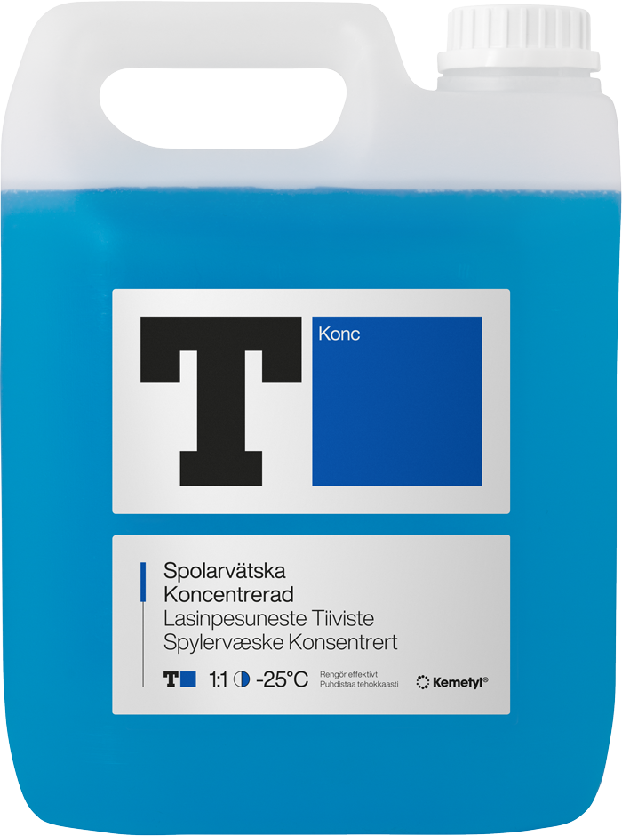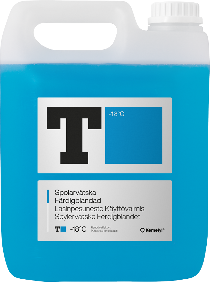Kemetyl T-Blå® Spolarvätska har varit en av våra mest sålda produkter ända sedan 1974. Den rengör effektivt bilens vindrutor, strålkastare och speglar från vägsalt, trafikfilm och andra smutspartiklar utan att skada torkarblad, gummilister, lack eller polykarbonatglas.