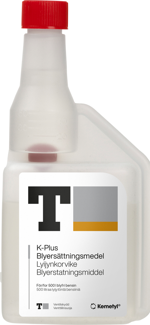 K-Plus Blyersättningsmedel är ej oktanhöjande. Produkten är kompatibel med Kemetyl K-Sprit.